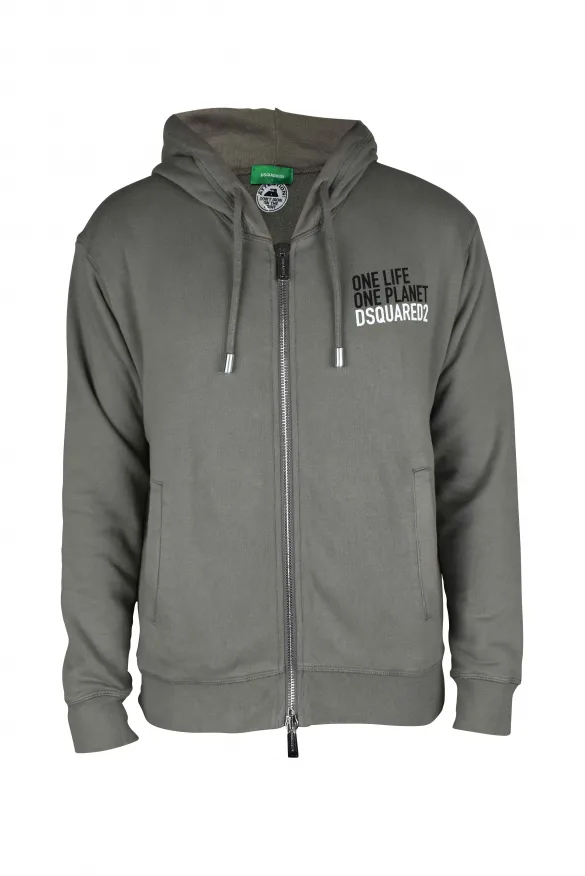 Sweater met capuchon van grijs katoen Dsquared2.Inscriptie One Life One Planet gedrukt op de borst.Logo gedrukt op de borst.Ritssluiting.Capuchon met trekkoord.Geribbelde randen.Twee zijzakken en lange mouwen.Gemaakt in Italië.