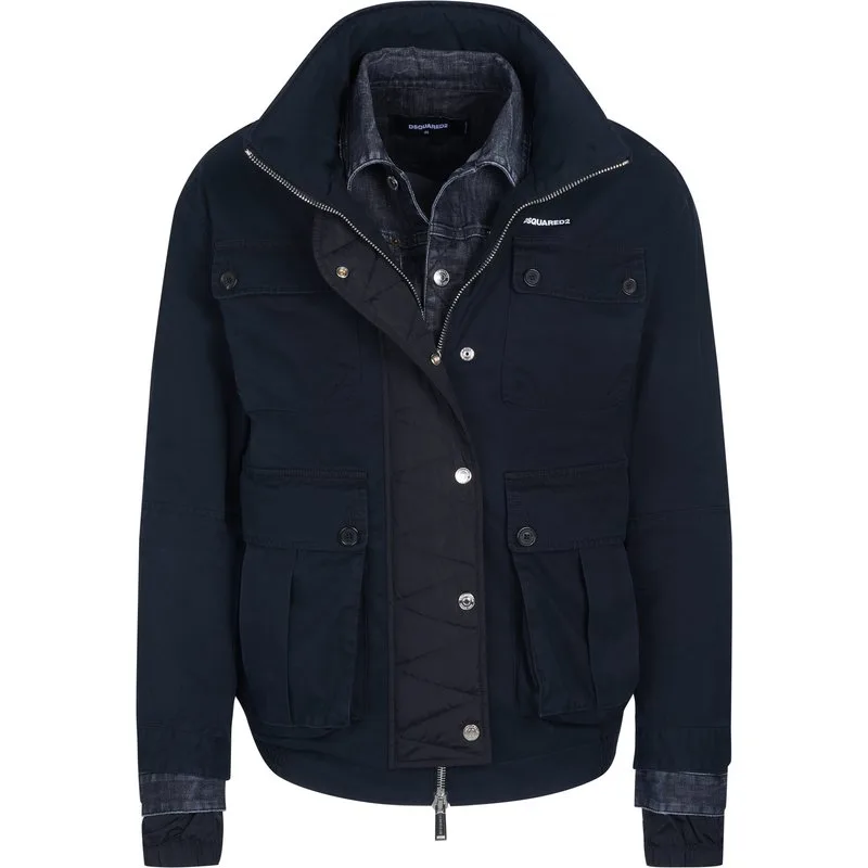 100% katoen; Dsquared2-jas; Model: S71AN0331 900; Hoogwaardige afwerking; Opstaande kraag met afneembare capuchon; Ritssluiting, knoopsluiting met drukknopen; Twee zijzakken; Twee borstzakken; Dsquared2-logodetails