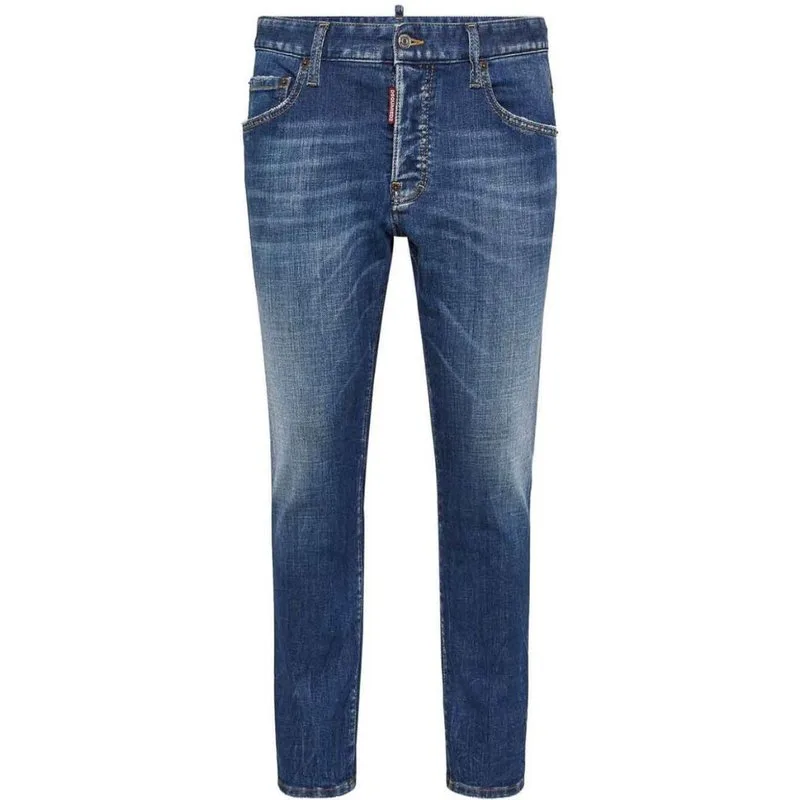 De Dsquared2 Easy Wash Super Twinky jeans in marineblauw combineert Italiaans vakmanschap met een eigentijdse stijl. Gemaakt van een hoogwaardige mix van 98% katoen en 2% elastaan, bieden deze jeans uitzonderlijk comfort en duurzaamheid zonder in te leveren op flexibiliteit. De super twinky pasvorm zorgt voor een slank, modern silhouet dat verschillende lichaamstypes flatteert, terwijl de marineblauwe kleur veelzijdige stylingmogelijkheden biedt voor elke garderobe. De easy wash afwerking minimaliseert de onderhoudstijd, waardoor je jeans er met minimale inspanning fris uitzien. Deze in Italië gemaakte jeans staan voor kwaliteit en oog voor detail, eigenschappen die veeleisende modekenners waarderen. Perfect om je dagelijkse look te verrijken met ingetogen luxe en betrouwbaar comfort