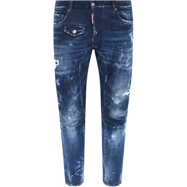 Dsquared2 Tidy Biker Jean Paint Splatter Donkerblauwe Denim Broek Prijzen