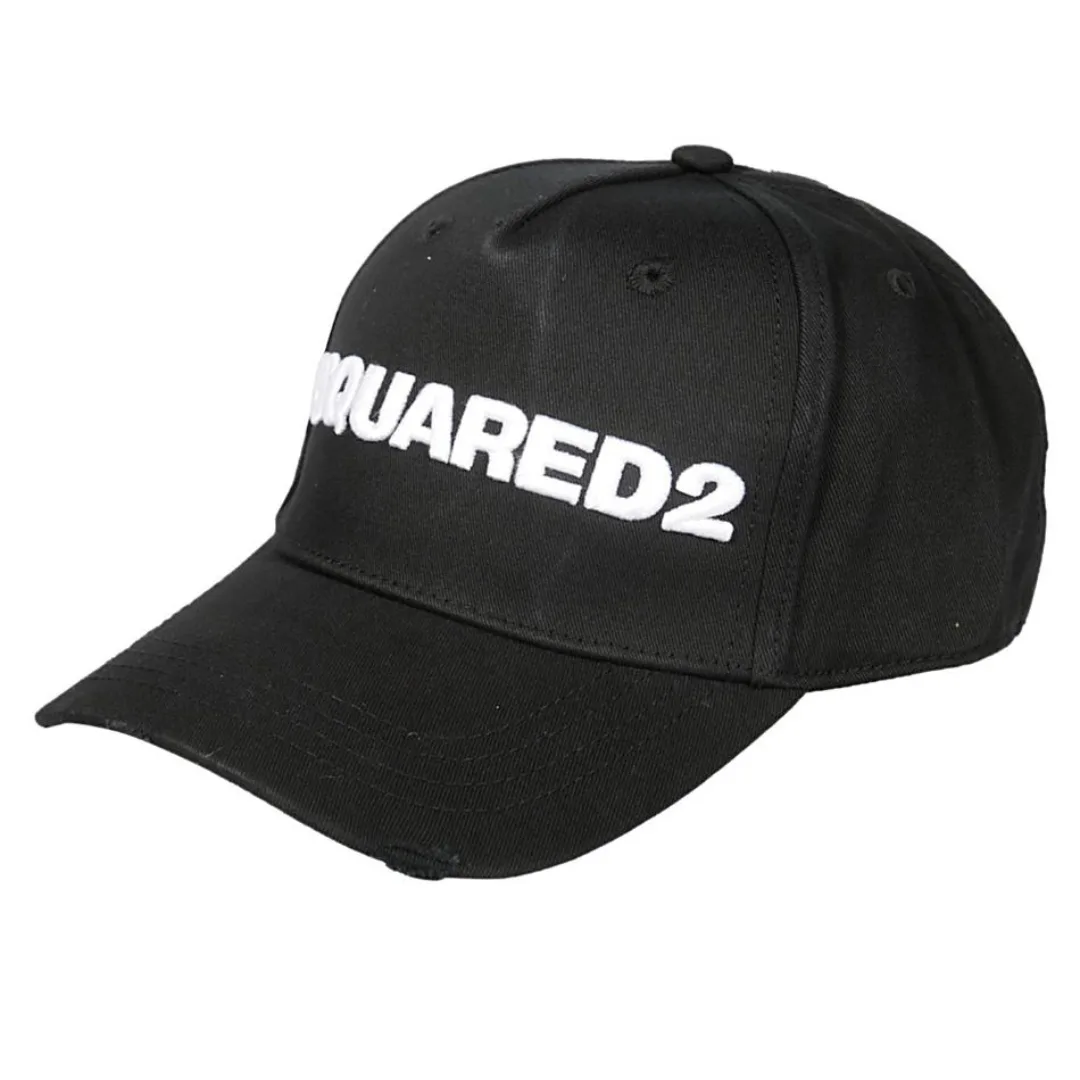 DSQUARED2 wit geborduurd logo zwarte dop. DSQUARED2 Witte geborduurde zwarte hoed. 100% katoen. Dsquared2 baseballpet. Stijlcode: BCM0028 05C00001 M063. Dean & Dan Caten geborduurd op de achterkant
