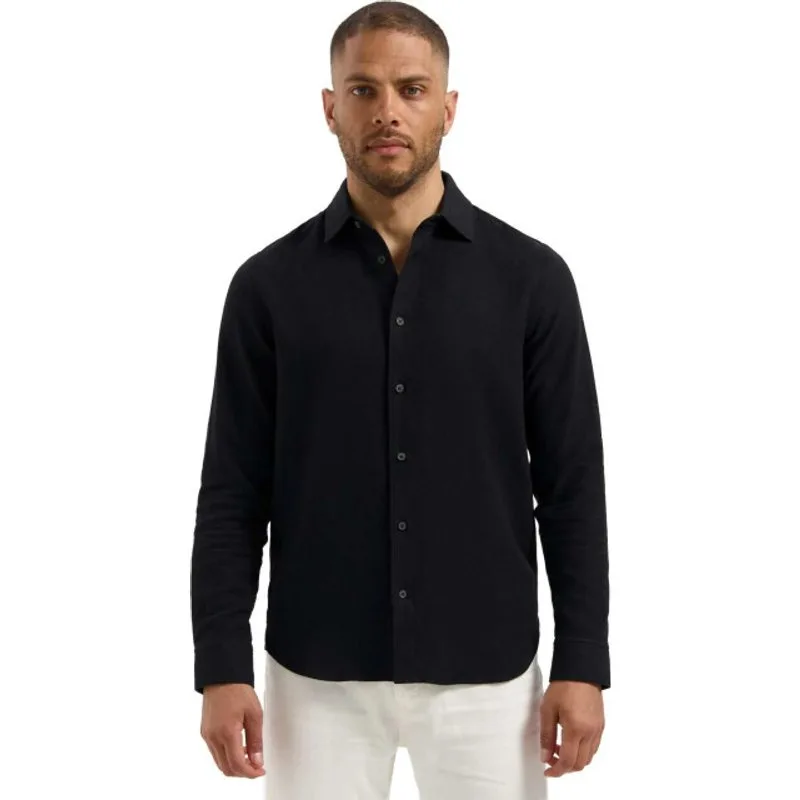 Het Dstrezzed Alvin overhemd toont zich in effen zwart die zowel subtiel als karaktervol is. De mix van katoen en viscose geeft de stof een zachte, gladde uitstraling met een fijne ingeweven structuur die je bij elke beweging ziet meebewegen. Het lange mouwontwerp en de normale lengte maken het een veelzijdig shirt dat je makkelijk onder een trui draagt of los op een chino laat zien. De rustige effen kleur legt de nadruk op de stofkwaliteit en het vakmanschap, waardoor het overhemd zowel zakelijk als meer casual inzetbaar is. Dankzij de doordachte materialen voelt het prettig op de huid en behoudt het zijn vorm tijdens draagmomenten.