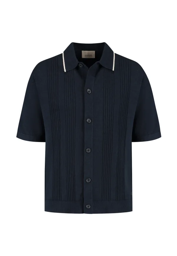Het Dstrezzed Daxton shirt in donkerblauw voelt soepel en comfortabel, met een pasvorm die natuurlijk om je lichaam valt. De fijngebreide bouclé-look van katoen en nylon geeft net dat beetje luxe. De polokraag en knopen houden het rustig en verzorgd, ideaal voor lente- en zomerdagen. Draag hem solo of open over een T-shirt voor een ontspannen, zelfverzekerde uitstraling.