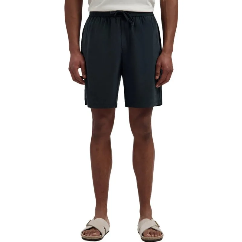 De Logan Easy Short van Dstrezzed is een zwarte short met een normale taillehoogte en regular fit. De broek is gemaakt van een mix van polyester en modal wat een zachte grip heeft en sneldrogend is. De elastische tailleband heeft een strikkoord en in de zijnaden zitten zakken. Voor een set combineer je hem met het Logan easy shirt van dezelfde stof die je open met een T-shirt eronder gaat dragen. Een rustige basis met een verzorgde, moderne uitstraling.
