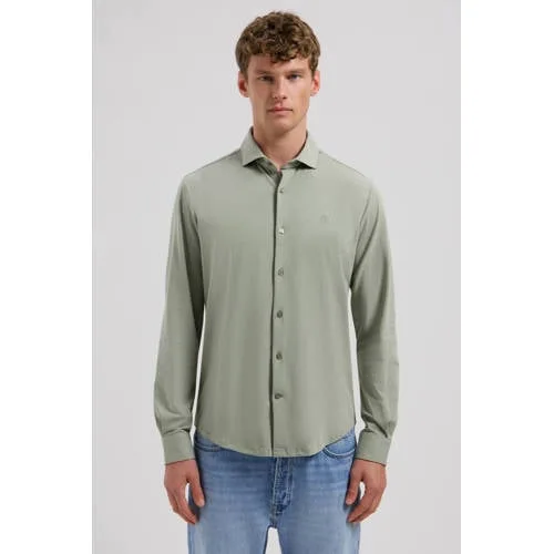 Ga voor een ontspannen maar verzorgde look met dit Dstrezzed overhemd Boris in de kleur 'Green Shadow'. Het casual shirt met lange mouwen is gemaakt van zachte jersey, waardoor het aanvoelt als een comfortabel T-shirt maar oogt als een net overhemd. De slim fit sluit mooi aan op het lichaam zonder strak te zitten, ideaal voor zowel een werkdag als een etentje.Comfortabele jersey met nette uitstraling Gemaakt van 94% katoen en 6% elastaan voor een zachte touch met fijne stretch Jersey kwaliteit, waardoor het shirt soepel valt en prettig meebeweegt Slim fit pasvorm voor een moderne, smalle look Klassieke kraag en knoopsluiting voor een tijdloze uitstraling Effen groen in de tint 'Green Shadow', makkelijk te combineren met jeans of chino Zonder borstzak voor een rustige en strakke voorkant Lange mouwen, geschikt voor zowel opgerold als helemaal dichtgeknooptCasual overhemd voor elke dagDit shirt is ideaal als je iets zoekt dat netter is dan een T-shirt maar minstens zo comfortabel. Draag het los over een jeans voor een relaxte dag, of in je broek met een riem voor een iets gekledere outfit.Dstrezzed: moderne herenmode met gemakDstrezzed richt zich op herenmode die er verzorgd uitziet en prettig zit in het dagelijks leven. De collectie combineert eigentijdse pasvormen met doordachte details, zodat je zonder veel moeite goed voor de dag komt.Een veelzijdig overhemd dat comfort en een nette look moeiteloos samenbrengt.