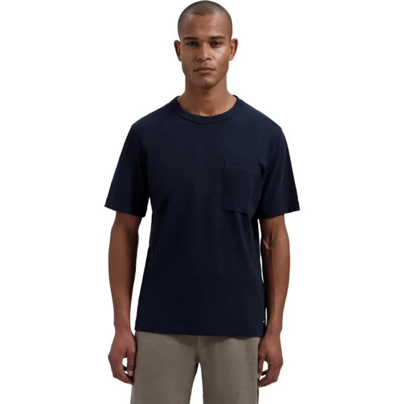 Dit Dstrezzed heren T-shirt in blauw is gemaakt van organisch katoen met slubgaren effect geweven. Het shirt heeft een ronde hals, borstzakje en een normale regular pasvorm. De verzorgde afwerking met onderaan bij de zoom een kleine logo speld houden het ontwerp rustig en tijdloos. Combineer het met een jeans, chino en short voor een eenvoudige, verzorgde look. Een heldere basic die je outfit stijlvol en zelfverzekerd afmaakt.