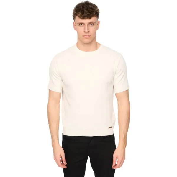 Duck and Cover Heren Marvela Gebreid T-shirt (Licht Steen)