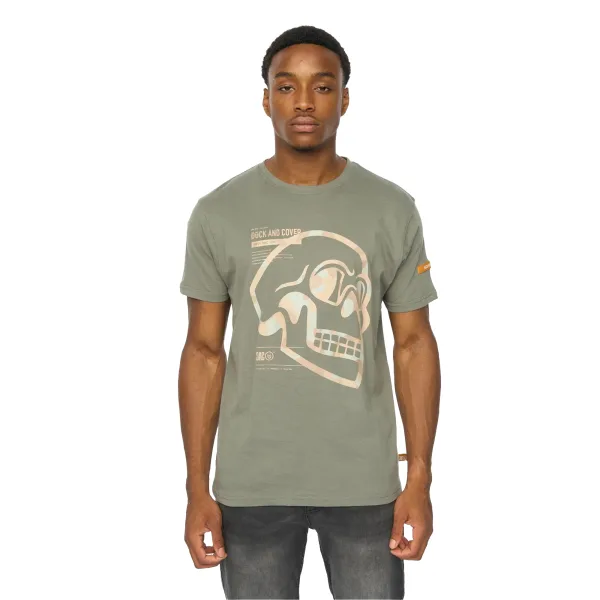 Duck and Cover Heren Skullmatic T-Shirt (Donkere Olijf) Prijzen