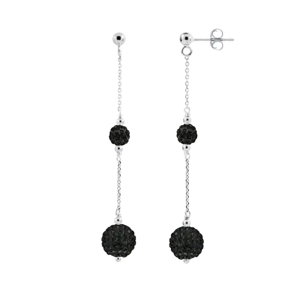 White Earrings - Balls Serstified - Black Crystal - Diameter 6/10 mm - Strollers System - Silver 925 duizendste - Garantie 2 jaar tegen elk defect van de fabricage - al onze juwelen bewijs van liefde worden in een doos geleverd met een certificaat van authenticiteit en internationaal garantie.