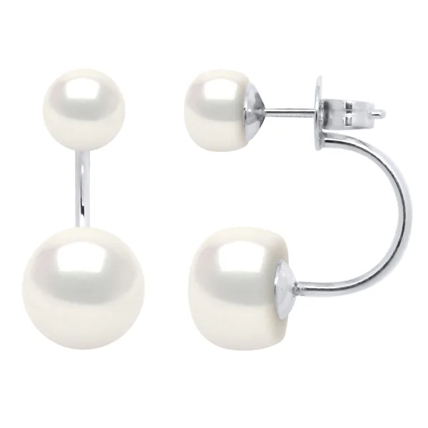 Oorbellen DUO - 925 duizendste rhodium - zoetwater gekweekte parels knop 6 en 9 mm - NATURAL WHITE - kinderwagens systeem - Wordt geleverd in een koffer met een certificaat van echtheid en een internationale garantie - Al onze sieraden zijn gemaakt in Frankrijk.
