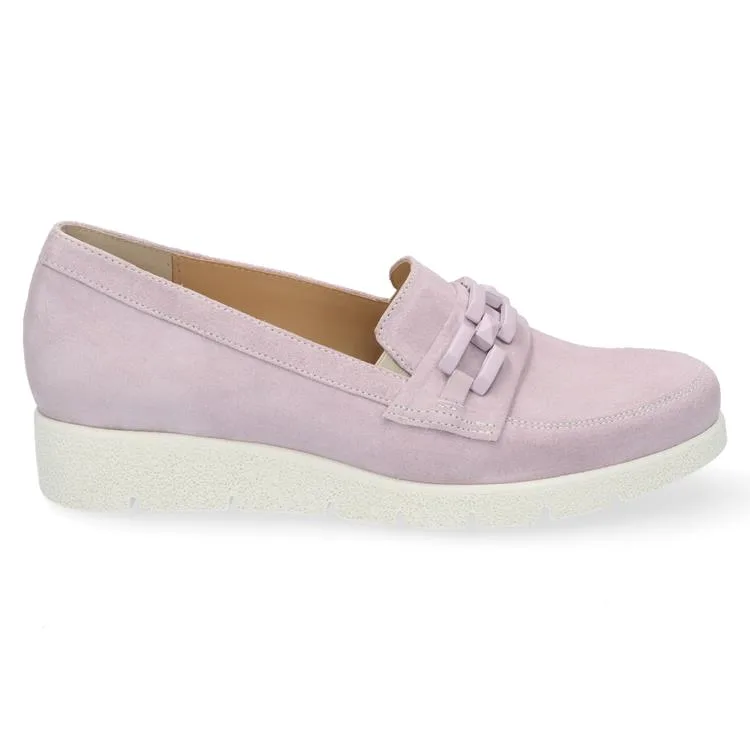 Of je ze nu combineert met een klassieke jeans-en-blazer outfit of draagt onder een jurk, deze instappers – ook wel loafers genoemd – stellen niet teleur. Dit model springt in het oog door de opvallende ketting en de sportieve zool, waarmee hij elke look leven inblaast.Zoals je van onze schoenen mag verwachten, zit ook dit exemplaar als gegoten. Dat komt door de elastische inzetten aan weerszijden van de tong en de optimale pasvorm die de hiel fixeert. Ons vakmanschap garandeert dat je niet uit de schoen slipt, noch extra druk op je hiel ervaart tijdens het lopen.De anti-slip zool is uitgerust met extra dempend vermogen en voorzien van inkepingen voor bijzonder veel stabiliteit en flexibiliteit bij elke stap. Kortom: met dit paar Durea’s sta je altijd stevig en comfortabel in je schoenen; wat de dag ook brengt.