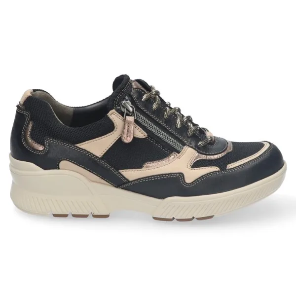 Voel jij je goed in een uitgesproken schoen? Dan heeft dit model jou veel te bieden. Het bovenwerk springt in het oog door de mix van verschillende materialen, en in combinatie met de net wat dikkere zool straalt deze sneaker sportiviteit en kracht uit. Opvallende kenmerken zijn de leren inzetten en het sierlijke stikwerk die de schoen speels en helemaal van nu maken. Andere bijzondere details zijn het merkembleem op de tong,de ronde veters en de ritssluiting bij de veterrand waarmee je de schoen gemakkelijk aan- en uittrekt.De tweekleurige zool ziet er niet alleen goed uit: uitgerust met Durea GO technologie zorgt deze ervoor dat je met gemak de hele dag op dit paar kan doorbrengen. Hoe dat kan? Durea GO loopzolen verdelen de druk gelijk over de gehele voet, waardoor staan en bewegen minder energie kost. Ze stimuleren de natuurlijke houding en zorgen voor een stabiel looppatroon. Kortom: deze sneakers zijn niet alleen een feestje aan maar zeker ook voor je voeten!