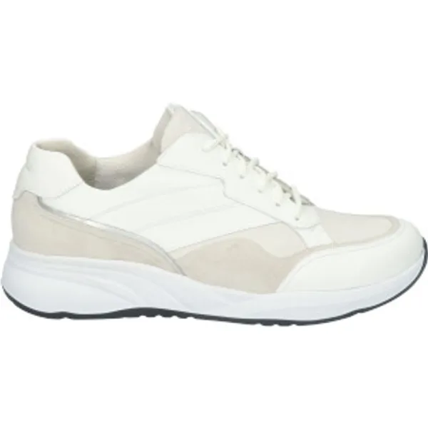 Dankzij de frisse combinatie van materialen en opvallende belijningen is deze sneaker de perfecte balans tussen sport en stijl. De subtiele, afgeronde lijnen in het ontwerp geven de sneaker een zachte, elegante uitstraling en maken van dit model een veelzijdig mode-item dat past bij werkelijk elke gelegenheid: van een werklunch met collega’s tot een snelle koffie-date na je workout.Dynamische belijningen en uitgesproken accenten geven het bovenwerk karakter. Dat zie je onder meer aan het merkembleem op de tong en de mix van texturen. Aan de binnenzijde, langs de veterklep, bevindt zich een functionele rits die slim is weggewerkt in het design. Deze combinatie van veters en rits maakt het niet alleen heel eenvoudig om de sneaker aan en uit te trekken, maar zorgt er ook voor dat je de pasvorm perfect kunt aanpassen aan jouw voet.Wat je niet meteen ziet, maar wel voelt, is de extra zachte polstering bij de hiel. Deze biedt comfortabele ondersteuning aan de achterzijde van de voet. En, zoals je van Durea mag verwachten, is ook de zool ontworpen met comfort in gedachten: deze is extra licht en flexibel en zorgt voor stabiliteit en grip. Verder geeft de zool een geweldige demping en door de oplopende neus wikkelt je voet tijdens het lopen als vanzelf af. Kortom: met deze sneaker ligt de wereld aan je voeten!