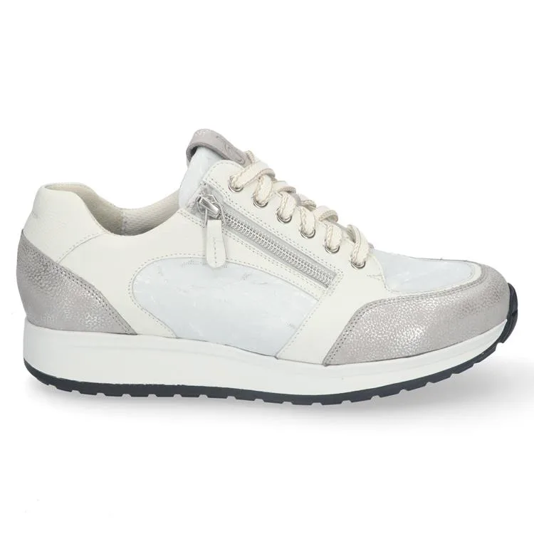 Deze sneaker is de perfecte kruising tussen sport en stijl. De belijning is sportief, maar in combinatie met verschillende luxe materialen ontstaat er een elegante look waar je heel veel kanten mee op kan. Combineer met een gekleurde pantalon en een oversized t-shirt of benadruk het sportieve karakter van deze schoen met een jeans en bomberjack. Het bovenwerk valt op door een dynamisch lijnenspel en een luxe mix van materialen. Op de tong prijkt ons Durea logo: een stempel van kwaliteit. Wat je niet meteen ziet, maar wel voelt, is de zachte polstering aan de binnenzijde van de hiel, die voorkomt dat de hielversteviging tegen je voet drukt. De klassieke derby-stijl vetersluiting in combinatie met de rits zorgt voor een gemakkelijke instap.De zool is uitgerust met Stabilized Roll System-technologie die stabiliteit en een extra vloeiende afwikkeling combineert. Je voet landt zacht op de hiel en rolt vervolgens in één vloeiende, stabiele beweging af naar de voorvoet. Dankzij deze gelijkmatige drukverdeling tijdens het lopen, worden je hiel, enkels en knieën minder belast. Dit maakt de schoen ook bijzonder geschikt voor wie te maken heeft met klachten zoals hielspoor of voorvoetproblemen. Verder draagt ook de lichtgewichte en flexibele constructie van de zool bij aan de ondersteuning en bewegingsvrijheid die deze sneaker je voeten biedt. Het resultaat? Een sneaker die net zo goed loopt als hij eruitziet, dag in dag uit.