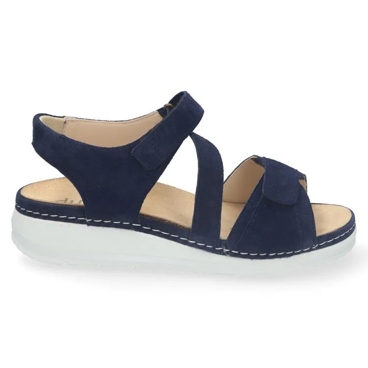 Deze stijlvolle Durea sandaal (artikel 7431) is de ideale keuze voor wie op zoek is naar een sportieve look zonder concessies te doen aan comfort. Uitgevoerd in prachtig diepblauw suède, biedt deze sandaal een zachte pasvorm en een tijdloze uitstraling die moeiteloos combineert met uw zomergarderobe.De sandaal is ontworpen met het oog op gebruiksgemak en ondersteuning, gekenmerkt door de opvallende witte zool die zorgt voor een frisse, moderne touch.Belangrijkste kenmerken:Materiaal: Vervaardigd uit hoogwaardig, soepel suède in een elegante donkerblauwe kleur.Verstelbaarheid: Voorzien van twee handige klittenbandsluitingen (op de wreef en de voorvoet), waardoor de sandaal perfect aansluit op uw voet.Voetbed: Zoals u van Durea gewend bent, beschikt dit model over een uitneembaar voetbed. Ideaal voor het dragen van uw eigen steunzolen.Zool: De lichtgewicht witte plateauzool is voorzien van een subtiel stiksel en biedt uitstekende demping en grip tijdens het wandelen.Pasvorm: De dichte hielkap zorgt voor extra stabiliteit en houdt de voet stevig op zijn plek. Sportief en ComfortabelOf u nu een actieve stedentrip maakt of een ontspannen middag in de tuin doorbrengt, deze Durea sandaal ondersteunt u bij elke stap. Het suède vormt zich prettig naar de voet, terwijl de contrasterende zool zorgt voor een dynamische uitstraling.Wist u dat? Durea schoenen volledig in eigen huis worden ontwikkeld met extra aandacht voor de natuurlijke vorm van de voet, wat resulteert in minder vermoeide voeten aan het eind van de dag.
