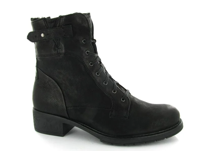 Halfhoge boots van het topmerk Durea. Dit model heeft een vetersluiting. De stevige hiel omsluiting en de lederen binnenzool zorgen voor een ideale pasvorm en stabiliteit. Doordta het voetbed uitneembaar is, kunnen ook eigen inlegzolen gedragen worden. Deze extra brede, wijdte K, schoenen van Durea, artikelnummer 9649