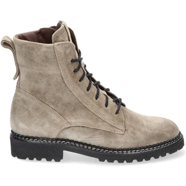 Outfits gecombineerd met dit enkelhoge veterlaarsje krijgen spontaan een coole uitstraling. Dat zit ‘m in de stoere treklus op de achterbies, de zachte beschermkraag rondom de enkels en de hoge tong. Andere opvallende kenmerken zijn het profiel van de zool en de grove veters. Toch is het de combinatie van deze stoere details met vrouwelijke elegantie waar deze schoen écht in uitblinkt. Let maar eens op de door stikwerk gecreëerde belijningen van het bovenwerk. Het maakt dat je deze laars zowel stoer als vrouwelijk, casual en gekleed kan dragen.De dikke zool met grof profiel is helemaal van nu en uitgerust met extra dempend vermogen. Verder is de bescheiden hak zo ontworpen dat deze de voeten volop stabiliteit biedt. Tel daarbij op dat de zool is gemaakt van lichtgewicht en flexibel materiaal en je snapt waarom dit model geliefd is bij een breed publiek. Natuurlijk is ook aan het gebruiksgemak gedacht: de rits aan de binnenzijde vergemakkelijkt het aan- en uittrekken. Deze iets bredere, wijdte H, veterbooties van Durea, artikelnummer 9722 9896