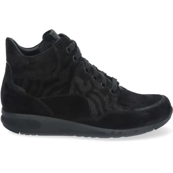 Met deze hoge sportieve veterschoen is het een genot om eropuit te gaan. Of je nu houdt van stevig doorwandelen in het bos of liever een ommetje maakt: dit model is een goede keuze. De zachte beschermkraag rondom de enkels geeft de schoen een uniek karakter. Andere bijzondere details zijn het merkembleem op de tong en de door stikwerk gecreëerde, golvende belijningen die het geheel een speelse twist geven.De platte veters zijn door metalen ringen geregen en in combinatie met de ritssluiting aan de zijkant van de laars trek je ‘m gemakkelijk aan en uit. Zeer modieus is de net iets dikkere, sportieve zool die bovendien is uitgerust met Durea GO technologie. Daarmee kan jij genieten van een schoen die een natuurlijke houding stimuleert en zorgt voor een stabiel looppatroon. Durea GO loopzolen verdelen de druk gelijk over de gehele voet, waardoor staan en bewegen minder energie kost. Ontdek het zelf!