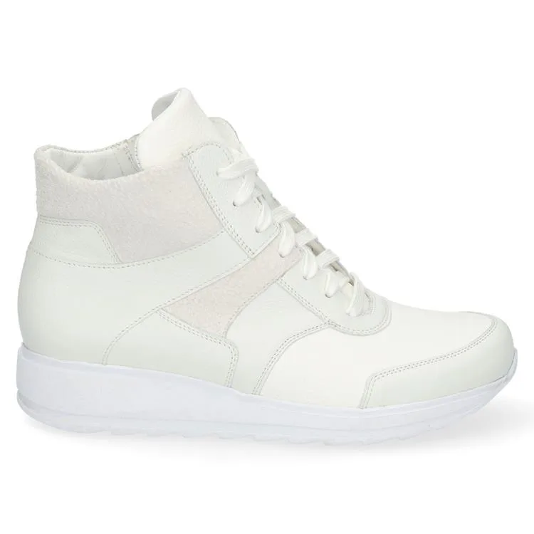 Heb jij nieuwe sneakers op je verlanglijstje staan? Dan is dit hoge model zeker het overwegen waard. De door stikwerk gecreëerde vlakken op de zijkant geven deze schoen een een elegante twist. Onder de veters is de tong van mesh, wat ademend werkt voor je voeten, en aan de binnenzijde zit een rits om het aan- en uittrekken te versoepelen. En dat is nog niet alles: het gebied rond de voorvoet is uitgevoerd in zachte, extra flexibele materiaal tegen knellen. Durea flex schoenen vormen zich direct naar de voet waardoor ze ideaal zijn voor mensen met een standsafwijking van de tenen (hallux valgus, klauwtenen en hamertenen). Verder is de sportieve zool speciaal ontwikkeld voor een goede afwikkeling van de voet en voorzien van een medium profiel voor een goede grip. Zo ben jij verzekerd van optimaal draagcomfort bij elke stap.