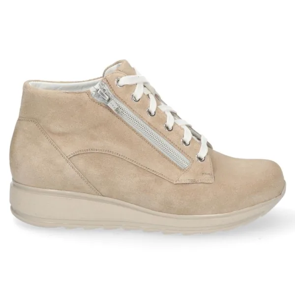 Deze hoge, sportieve veterschoen blinkt uit door stijlvolle eenvoud. Dat maakt het model tot een veelzijdige en duurzame basic waar je gegarandeerd jaren plezier van hebt. De door stikwerk gecreëerde belijningen geven dit model een uniek karakter, terwijl de zool zorgt voor een sportieve twist. Een praktische toevoeging is de veter-rits-combinatie, waardoor je de schoen makkelijk aan en uit kunt doen.Zoals alle Durea schoenen is veel aandacht besteed aan het draagcomfort. Ook voor de wat vollere voet blijven er geen wensen onvervuld! Het model heeft een verwisselbaar voetbed en is daarnaast voorzien van een tussenzooltje dat eruit kan worden gehaald om extra ruimte te creëren voor de voet. De loopzool geeft een geweldige demping en mede door de iets oplopende neus wikkelt je voet tijdens het lopen als vanzelf af. Vervaardigd uit sterk, licht én flexibel materiaal biedt de zool optimale ondersteuning en loopcomfort bij elke stap.