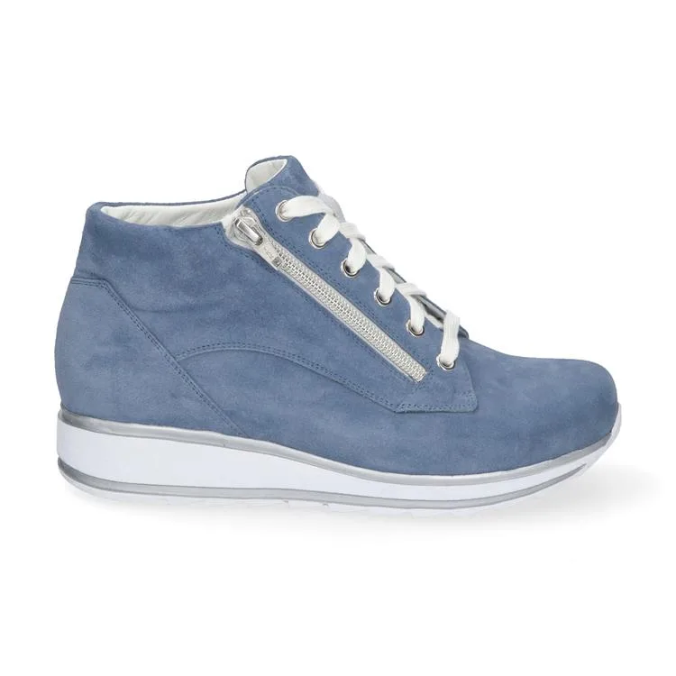 Deze hoge, sportieve veterschoen blinkt uit door stijlvolle eenvoud. Dat maakt het model tot een veelzijdige en duurzame basic waar je gegarandeerd jaren plezier van hebt. De door stikwerk gecreëerde belijningen geven dit model een uniek karakter, terwijl de zool zorgt voor een sportieve twist. Een praktische toevoeging is de veter-rits-combinatie, waardoor je de schoen makkelijk aan en uit kunt doen.Zoals alle Durea schoenen is veel aandacht besteed aan het draagcomfort. Ook voor de wat vollere voet blijven er geen wensen onvervuld! Het model heeft een verwisselbaar voetbed en is daarnaast voorzien van een tussenzooltje dat eruit kan worden gehaald om extra ruimte te creëren voor de voet. De loopzool geeft een geweldige demping en mede door de iets oplopende neus wikkelt je voet tijdens het lopen als vanzelf af. Vervaardigd uit sterk, licht én flexibel materiaal biedt de zool optimale ondersteuning en loopcomfort bij elke stap.