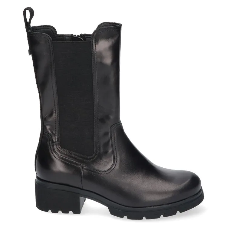 Chelsea boots zijn al jarenlang niet uit het modebeeld weg te slaan. Wij snappen wel waarom. Het enkellaarsje met elastieken inzetstukken is een regelrechte alleskunner. Elementen die typisch zijn voor de chelsea laars, zoals de inzetstukken en de ronde neus, worden bij dit model gecombineerd met een hoge schacht.Het ontwerp is minimalistisch, maar net even anders dan basic. Let bijvoorbeeld op de stikwerk belijningen, de hoge tong en de treklus van textiel op de hiel. Alles bij elkaar maakt dit een prachtig voorbeeld van een tijdloze schoen waar je nog jarenlang gegarandeerd plezier van hebt.Aan de binnenzijde van de schacht zit een rits, wat zorgt voor een makkelijke instap. De net iets dikkere zool met anti-slip profiel heeft een bescheiden hak, die dankzij zijn brede omvang een uitstekende stabiliteit biedt. Voor zo’n stevige, hoge schoen is dit model trouwens opvallend licht van gewicht, dus heerlijk draagbaar. Ervaar het zelf!