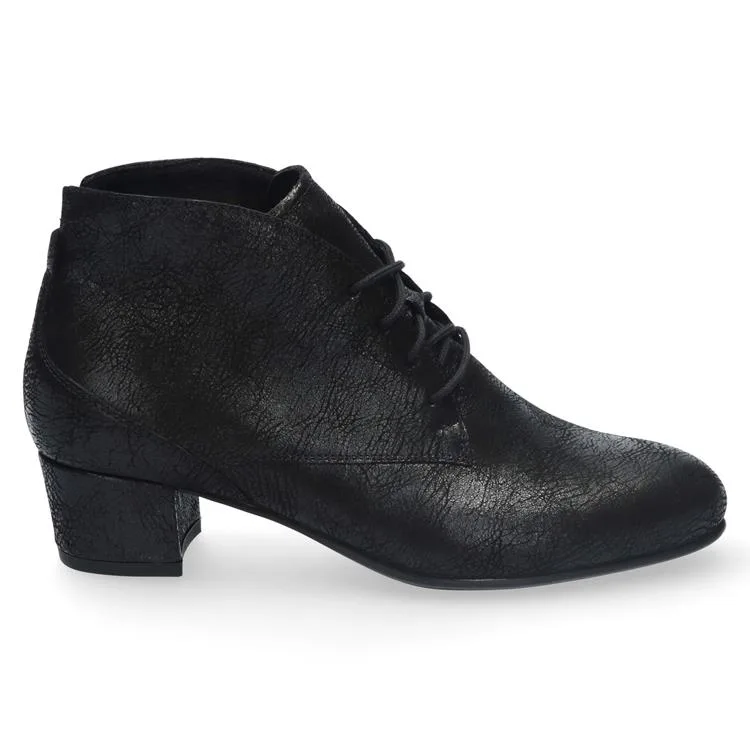 Deze veterlaarsjes zijn bijzonder multifunctioneel en op allerlei manieren te dragen: onder je favoriete rok en los breigoed, maar ook onder een jeans, simpele top en blazer. Alleen al daarom is dit model een goede investering in je garderobe. Het model blinkt uit in een even elegant als minimalistisch design. Bijzondere details zijn de afgeronde schacht, de gewaxte veters en de uitsparing in de vorm van een v’tje bij de hiel. Deze zorgt ervoor dat de voet aan de achterzijde wordt ontlast van drukpunten en geeft tegelijkertijd een nonchalante uitstraling. Het voorblad is verder geheel naadloos, waardoor dit model bijzonder geschikt is voor de gevoelige voet.De zool met beklede hak is zo ontworpen dat deze lichtgewicht is zonder in te boeten aan stevigheid. Ontwikkeld om jou comfort te bieden, combineert de flexibele, antislip loopzool bewegingsvrijheid en stabiliteit voor een ongeëvenaard loopgevoel.