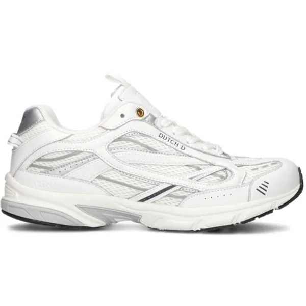 De Arena sneaker in White Silver is een grove sportieve sneaker. De sneaker heeft een ademende mesh onderlaag en een dikke gewatteerde padding. De Arena sneaker wordt geleverd met twee inlegzolen, een extra comfort inlegzool en een performance inlegzool die goed gebruikt kan worden wanneer je de sneaker gebruikt voor sporten, deze is een stabiele inlegzool waarme je directer contact hebt met de vloer. De sneakers hebben reflecterende elementen en een gevoerde tong en kraag.