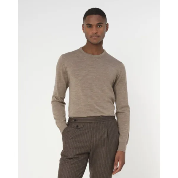 Dutch Dandies - Crew-neck sweater Connery biedt comfort en stijl in de warme tint Fields of Rye. Deze fijngebreide trui is perfect voor casual en smart-casual gelegenheden, met een zachte en duurzame constructie van hoogwaardige materialen. Dutch Dandies staat voor moderne elegantie en verfijning, met een oog voor detail en vakmanschap dat je garderobe naar een hoger niveau tilt. - Over het merk: Dutch Dandies is een merk dat de dandy lifestyle hoog in het vaandel heeft staan. De man die vanuit zijn levensvisie veel aandacht besteedt aan zijn uiterlijk, dat is een echte Dutch Dandy. De kledinglijn is geïnspireerd op de ouderwetse dandy stijl, maar ouderwets is een woord waarmee je het merk tekort zou doen. De man met een Rock & Roll lifestyle, maar dan met een grote feeling voor stijl en details.