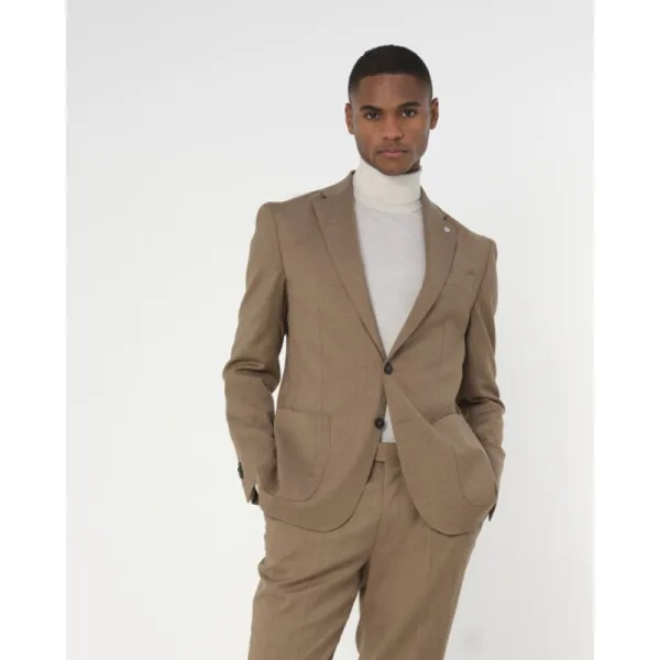 Dutch Dandies Damon Mix & Match Colbert combineert stijl met vakmanschap. Dit camel colbert is gemaakt van 99% wol en 1% elastaan, met een zachte flanellen constructie. Het colbert heeft opgestikte zakken, een dubbele split en sluit met drie knopen. Perfect voor diverse gelegenheden met zijn haak revers en binnenzak. Dutch Dandies staat bekend om zijn verfijnde mix van klassieke stijl en modern design, ideaal voor een veelzijdige look. - Over het merk: Dutch Dandies is een merk dat de dandy lifestyle hoog in het vaandel heeft staan. De man die vanuit zijn levensvisie veel aandacht besteedt aan zijn uiterlijk, dat is een echte Dutch Dandy. De kledinglijn is geïnspireerd op de ouderwetse dandy stijl, maar ouderwets is een woord waarmee je het merk tekort zou doen. De man met een Rock & Roll lifestyle, maar dan met een grote feeling voor stijl en details.