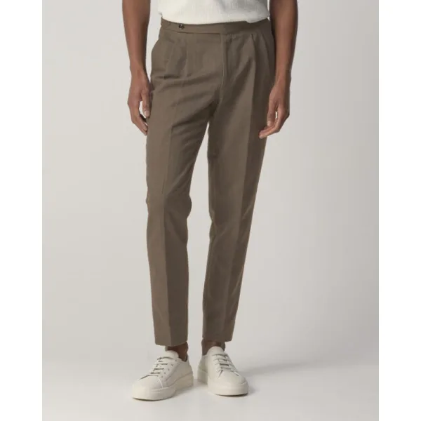 Dutch Dandies Portofino Pantalon combineert stijl en comfort met zijn army green kleur en moderne fit. Voorzien van steekzakken voor, klepzakken achter, en een knoop- en ritssluiting. Gemaakt van een linnen-katoen mix biedt het een luxe uitstraling zonder stretch. Dutch Dandies staat voor verfijnde mode met oog voor detail en kwaliteit, perfect voor wie zich moeiteloos stijlvol wil kleden. - Over het merk: Dutch Dandies is een merk dat de dandy lifestyle hoog in het vaandel heeft staan. De man die vanuit zijn levensvisie veel aandacht besteedt aan zijn uiterlijk, dat is een echte Dutch Dandy. De kledinglijn is geïnspireerd op de ouderwetse dandy stijl, maar ouderwets is een woord waarmee je het merk tekort zou doen. De man met een Rock & Roll lifestyle, maar dan met een grote feeling voor stijl en details.