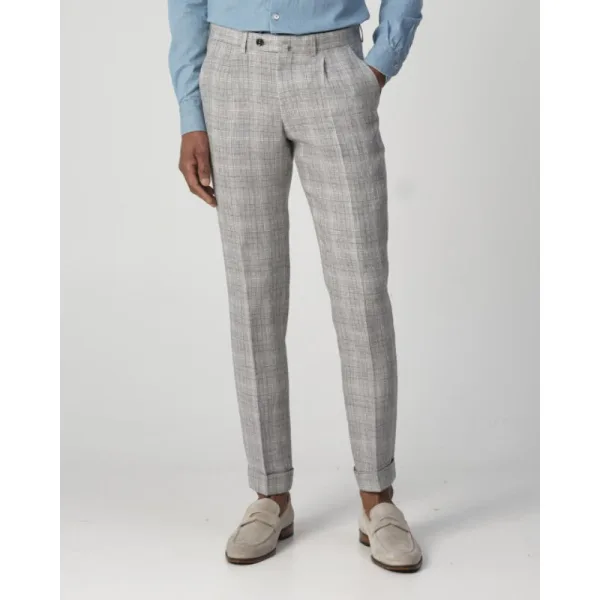 Dutch Dandies Prato Mix & Match Pantalon vangt de elegante mix van lichtgrijs met grote ruit perfect. Met een moderne fit en sluiting van knoop en rits, biedt deze pantalon een verfijnde look. Gemaakt van 100% linnen, compleet met steekzakken voor en knoopzakken achter. Dutch Dandies staat bekend om hun stijlvolle, veelzijdige ontwerpen die zich moeiteloos aanpassen aan elke gelegenheid. - Over het merk: Dutch Dandies is een merk dat de dandy lifestyle hoog in het vaandel heeft staan. De man die vanuit zijn levensvisie veel aandacht besteedt aan zijn uiterlijk, dat is een echte Dutch Dandy. De kledinglijn is geïnspireerd op de ouderwetse dandy stijl, maar ouderwets is een woord waarmee je het merk tekort zou doen. De man met een Rock & Roll lifestyle, maar dan met een grote feeling voor stijl en details.