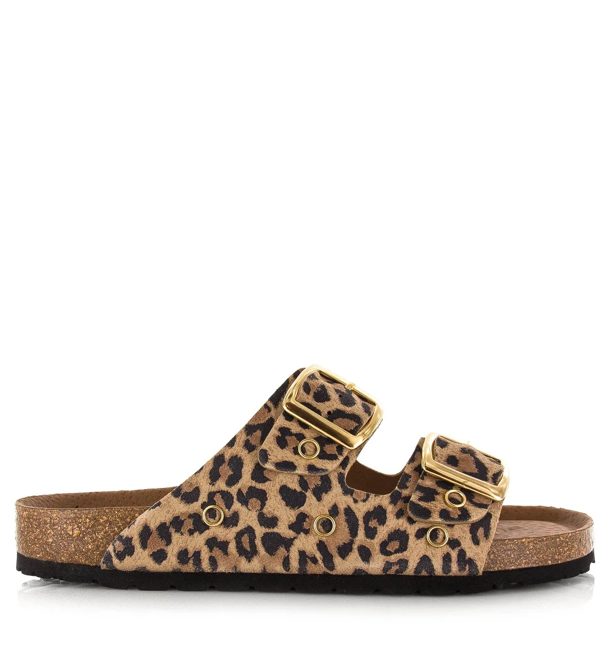 Dwrs Label – Leopard slippers leer met Leer Dames