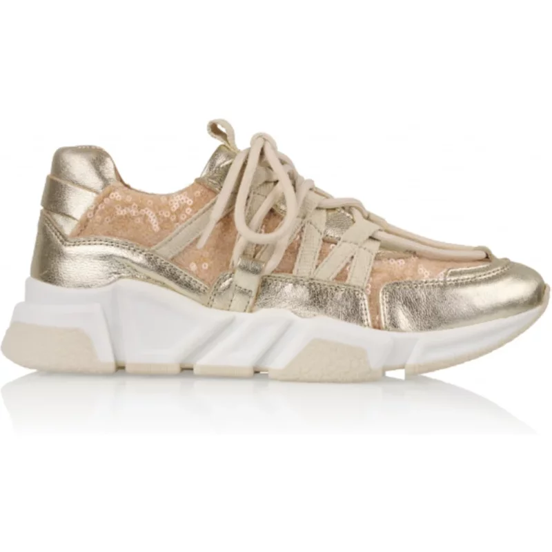 De DWRS LOS ANGELES Sequins Champagne Dames Sneaker is een stijlvolle en verfijnde sneaker die een vleugje glamour toevoegt aan je outfit. Het bovenwerk van glinsterende sequins in een chique champagnekleur geeft de sneaker een luxe uitstraling, terwijl de comfortabele binnenzool en flexibele rubberen zool zorgen voor optimaal draagcomfort. Perfect voor een avondje uit of een casual chic look, de DWRS LOS ANGELES combineert fashion met functionaliteit voor de modebewuste vrouw. MAATADVIES De Los Angeles sneaker valt iets korter in de lengte en smaller in de breedte dan je van ons gewend bent. Twijfel je? Wij adviseren om de Los Angeles 1 maat groter te nemen. De lengte van de sneaker is 23 cm en de hakhoogte is 4 cm.