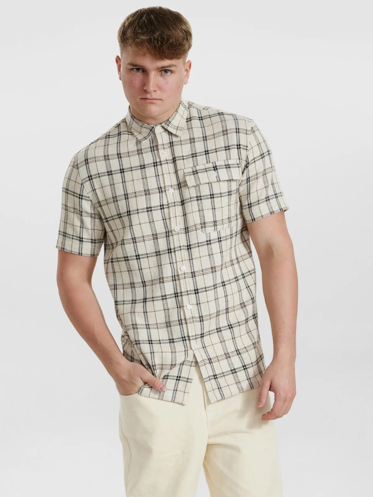 Materiaal: Katoen; Halstype: Opstaande kraag; Motief: Geruit; Pasvorm: Normale pasvorm; Armlengte: Kwartmouw; Lengte: Normale lengte