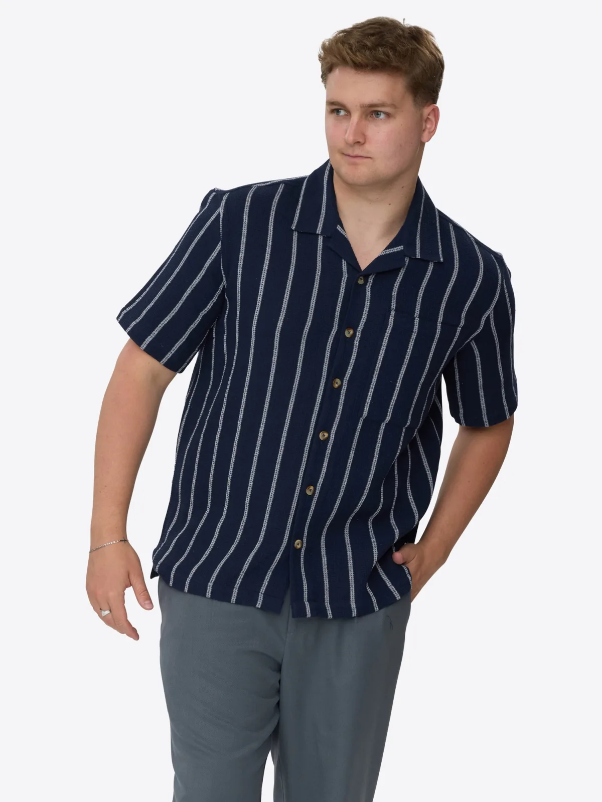 Materiaal: Katoen; Halstype: Opstaande kraag; Motief: Gestreept; Pasvorm: Losse pasvorm; Armlengte: Kwartmouw; Lengte: Normale lengte