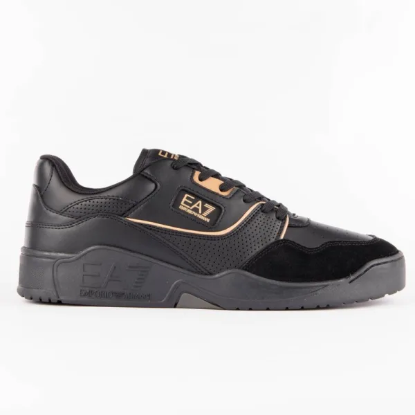 EA7 Patch Logo Sneakers voor heren, zwart synthetisch. Authentieke EA7 merkschoen – streetwear/sportswear design van EA7 – EA7 voor heren, modieus, perfect voor dagelijks gebruik – zwarte EA7 sneakers zijn een geweldige aanvulling op je garderobe – comfortabel synthetisch materiaal – klassieke veters – patch logo – synthetisch.