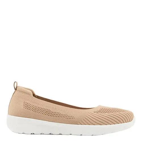 Deze beige dames instappers van Easy Street zijn gemaakt voor dagen waarop je moeiteloos wilt lopen en geen zin hebt in veters of gespen. De effen beige kleur is rustig en subtiel, waardoor de schoen eenvoudig combineert met je garderobe. Dankzij het zachte textiel rond je voet en de ronde neus voelt elke stap ontspannen en natuurlijk aan.Comfort bij elke stap Instapmodel zonder sluiting, je stapt er snel in en uit Normale leest, geschikt voor de meeste voetvormen Zachte textielen buitenkant, voering en bovenwerk voor een aangenaam gevoel Uitneembare binnenzool, handig als je eigen inlegzolen draagt Binnenzool van EVA voor een lichte demping onder de voet Platte zool voor een stabiel en ontspannen loopgevoel Ronde neus die je tenen voldoende ruimte geeftPraktisch voor alledaags gebruikDeze instapper is geschikt voor dagelijks gebruik, bijvoorbeeld naar je werk, de stad in of een afspraak. Door het soepele textiel en de platte zool kun je de schoen langdurig dragen. Het instapmodel maakt het makkelijk om de schoen snel aan te trekken wanneer je de deur uit gaat.Easy Street, gericht op comfortEasy Street staat bekend om schoenen die comfort centraal zetten. De ontwerpen zijn gericht op draaggemak, met lichte materialen en doordachte pasvormen. Zo kies je een schoen die je voeten ondersteunt tijdens je dagelijkse activiteiten, zonder dat je hoeft in te leveren op een moderne, toegankelijke stijl.Een rustige, comfortabele basis voor elke dag waarop je ontspannen op pad wilt.