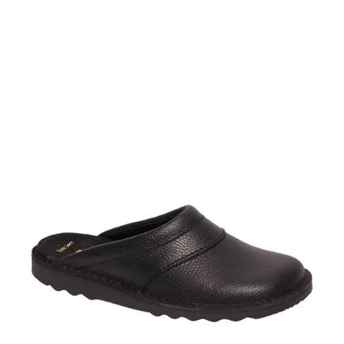 Heren pantoffels van Easy Street uit de vanHaren collectie, gemaakt van leer. Het instapmodel is voorzien van een rubberen loopzool.