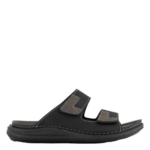 Stap comfortabel je dag in met deze antracietkleurige Easy Street heren slippers. Het eenvoudige design in imitatieleer combineert een rustige uitstraling met praktisch gemak. Geschikt voor thuis, op de camping of tijdens een ontspannen wandeling, dankzij de verstelbare band en de lichte loopzool.Comfort en stevigheid in één Bovenkant gemaakt van imitatieleer voor een nette, verzorgde look Voering en binnenzool van zacht textiel dat prettig aanvoelt op blote voeten Rubberen buitensool voor grip op verschillende ondergronden Klittenbandsluiting voor een eenvoudig verstelbare pasvorm Normale leest, geschikt voor de meeste voetvormen Platte zool voor stabiel en ontspannen lopen Antraciet kleur die makkelijk te combineren is met je dagelijkse outfitsPraktisch voor elke dagDeze slipper is een praktische optie voor momenten waarop je snel en makkelijk schoenen aan wilt trekken. De klittenbandsluiting stel je in één beweging af, zodat de slipper goed aan de voet blijft zitten. Handig voor binnen in huis, in de tuin of even naar buiten.Easy Street: alledaags gemakEasy Street richt zich op schoenen die je dagelijks kunt dragen. Heldere designs en comfortabele pasvormen staan centraal, zodat je zonder gedoe goede schoenen in de kast hebt. Met deze heren slipper kies je voor praktisch gemak in een rustige, draagbare stijl.Een ontspannen basis voor elke casual dag.