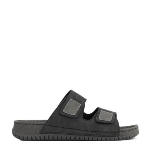 Deze slipper voor heren van Easy Street uit de vanHaren-collectie heeft een normale pasvorm en heeft een bovenwerk van PU. Het model is voorzien van een wreefband en een platte zool. De slipper heeft een synthetische voering.