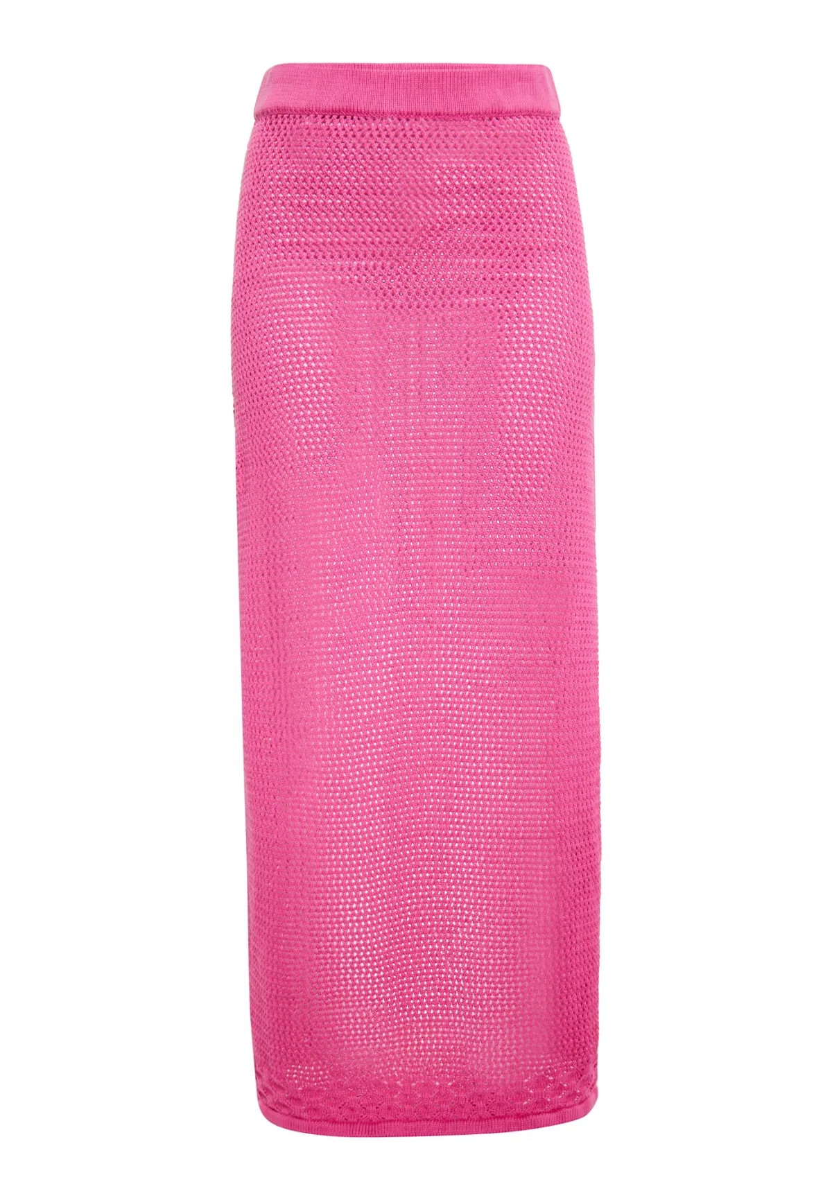 Geef je zomergarderobe een boost met deze gebreide lange rok. Dit kledingstuk met hoge taille heeft een aansluitend silhouet en een structuurpatroon en biedt zowel stijl als comfort. De elastische tailleband zorgt voor een perfecte pasvorm en de geschulpte zoom zorgt voor een decoratieve touch. Ideaal voor de zomer, de opengewerkte details zorgen voor een semi-transparant effect voor een chique uitstraling. Rock