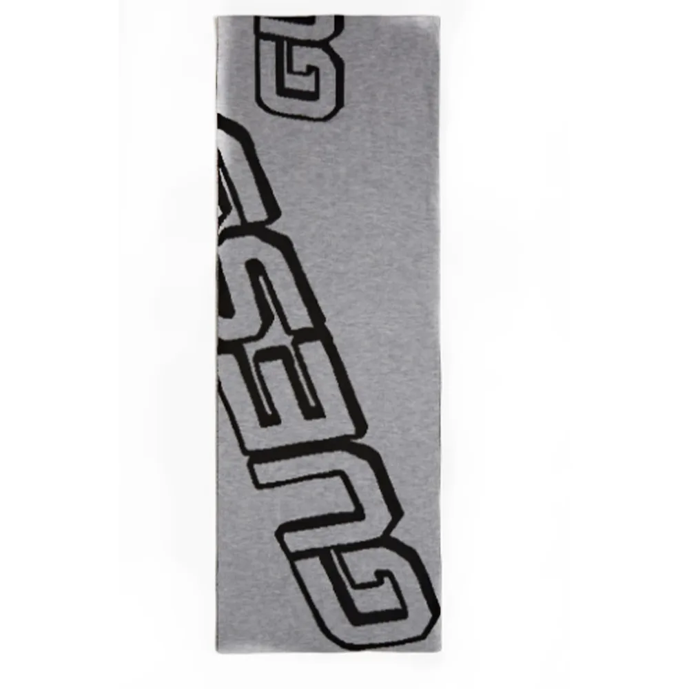 Grijze katoenen herensjaal van Guess met logo-jacquard over de hele sjaal. Authentiek Guess-accessoire - streetwear/sportswear design van Guess - Guess herenmode, perfect voor dagelijks gebruik - de grijze Guess-sjaal past perfect bij de rest van je garderobe - comfortabel katoen - klassiek - logo-jacquard over de hele sjaal