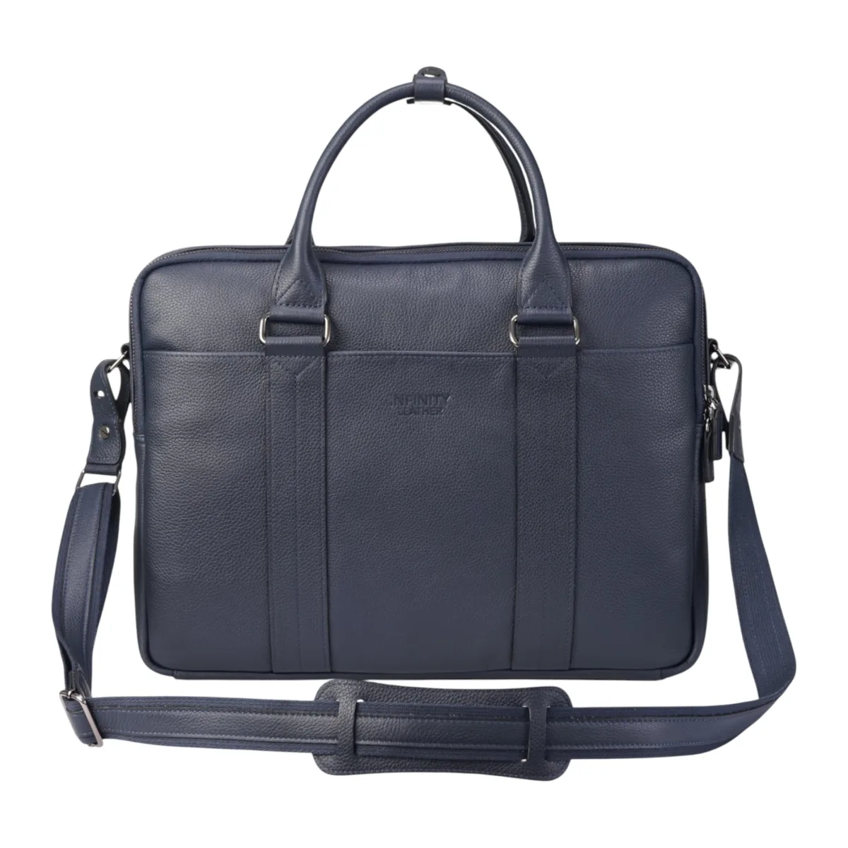 Echte leren marineblauwe laptop- en zakentas – Sutton