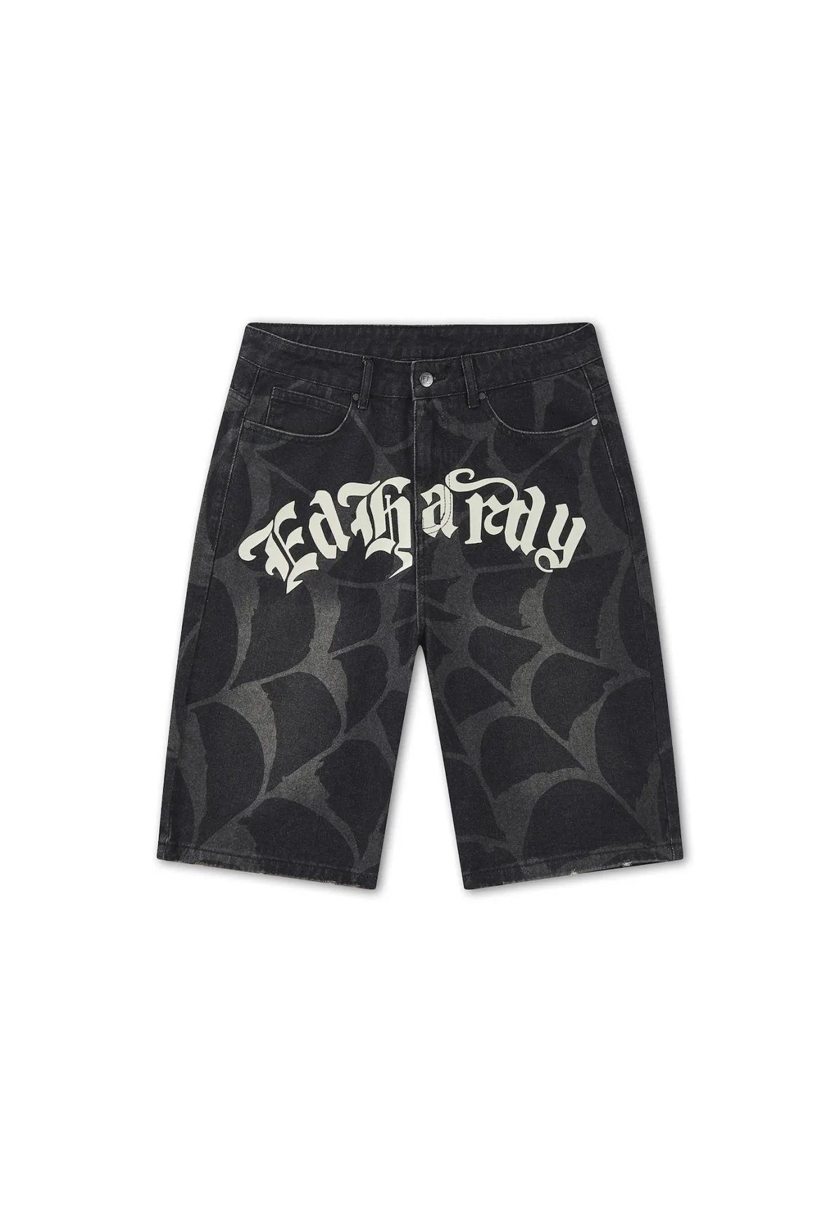 Ed Hardy Jeans 'Cobweb' donkergrijs / black denim / offwhite