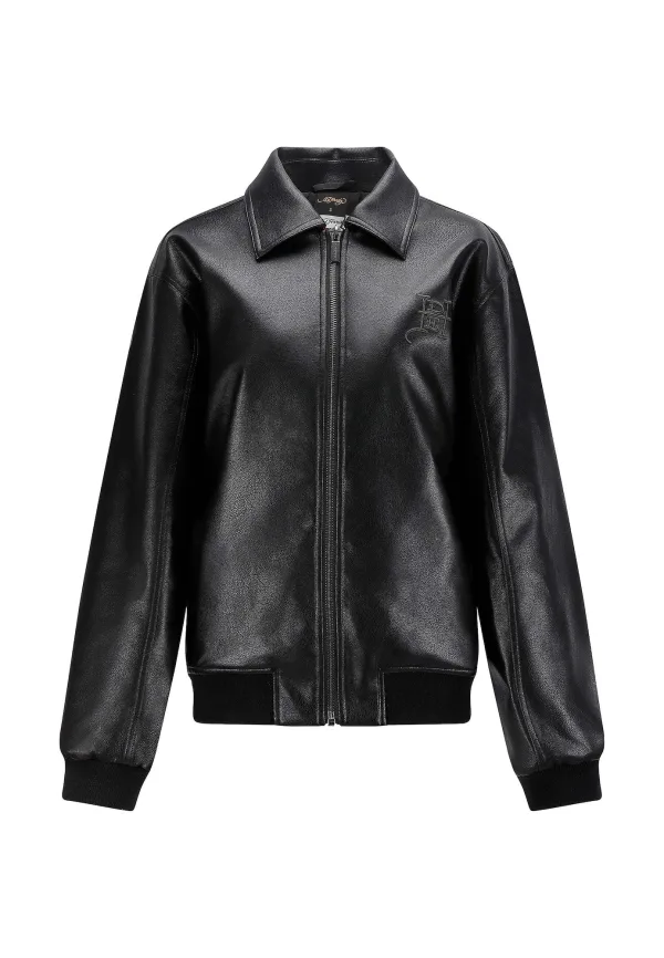 Design: Elastische taille/zoom, Overcut schouder, Turn-down kraag; Type sluiting: Ritssluiting; Type jas: Bomberjack; Voering: Licht gevoerd; Materiaal: Imitatieleder; Motief: Effen; Extra's: Reliëf structuur, Label borduurwerk, Op staal naden, Gladde stof; Pasvorm: Losse pasvorm