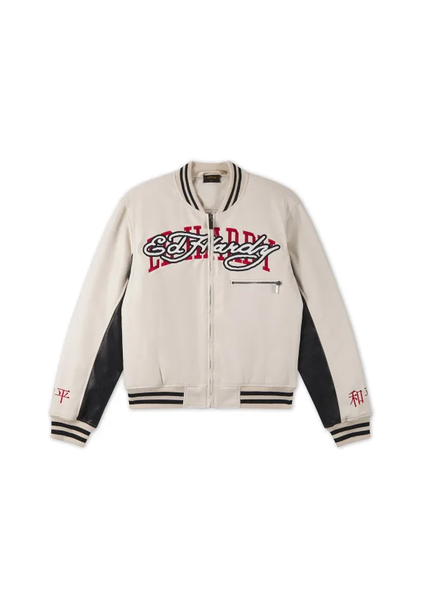 Ed Hardy Winterjas ‘1971 Panther’ ecru / rood / zwart