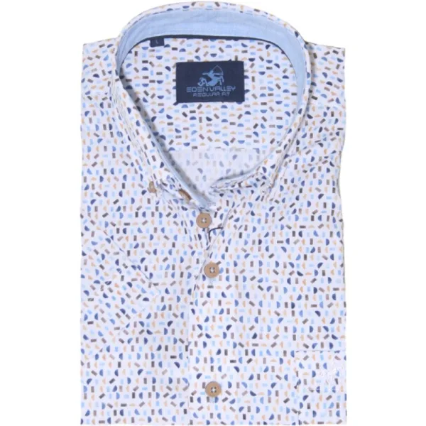 Zomers heren overhemd in een fris dessin van het merk Eden Valley. Regular fit Borstzakje 100% Katoen Kleurnummer: 42
