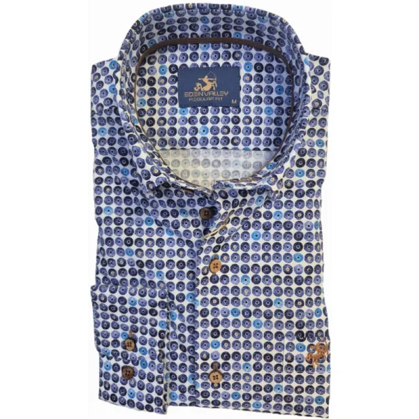 Lange mouw shirt van Eden Valley met ene handig borstzakje. Dit regular fit heren overhemd heeft een button-down kraag en een allover print dessin. Regular fit Borstzakje 97% Katoen/ 3% Elasthan Kleurnummer: 35