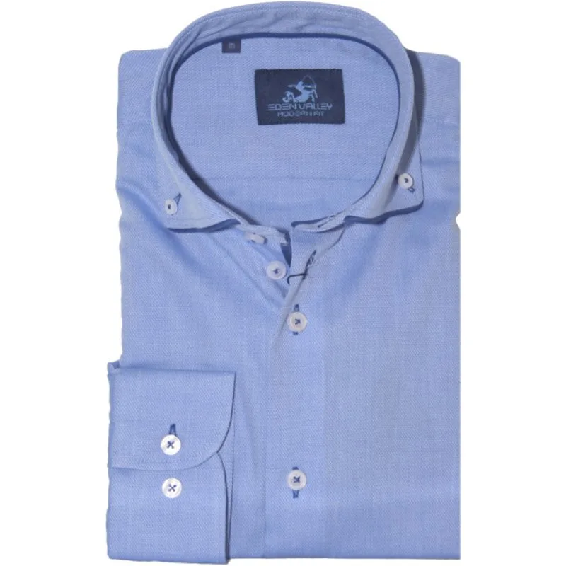 Mooie gekleed heren overhemd met lange mouwen van Eden Valley. Dit overhemd heeft een mooie 'Italiaanse kraag' met contrasterende rand en kan perfect gedragen worden met een mooi colbert voor zakelijk en een gelegenheid. Modern fit 100% Katoen